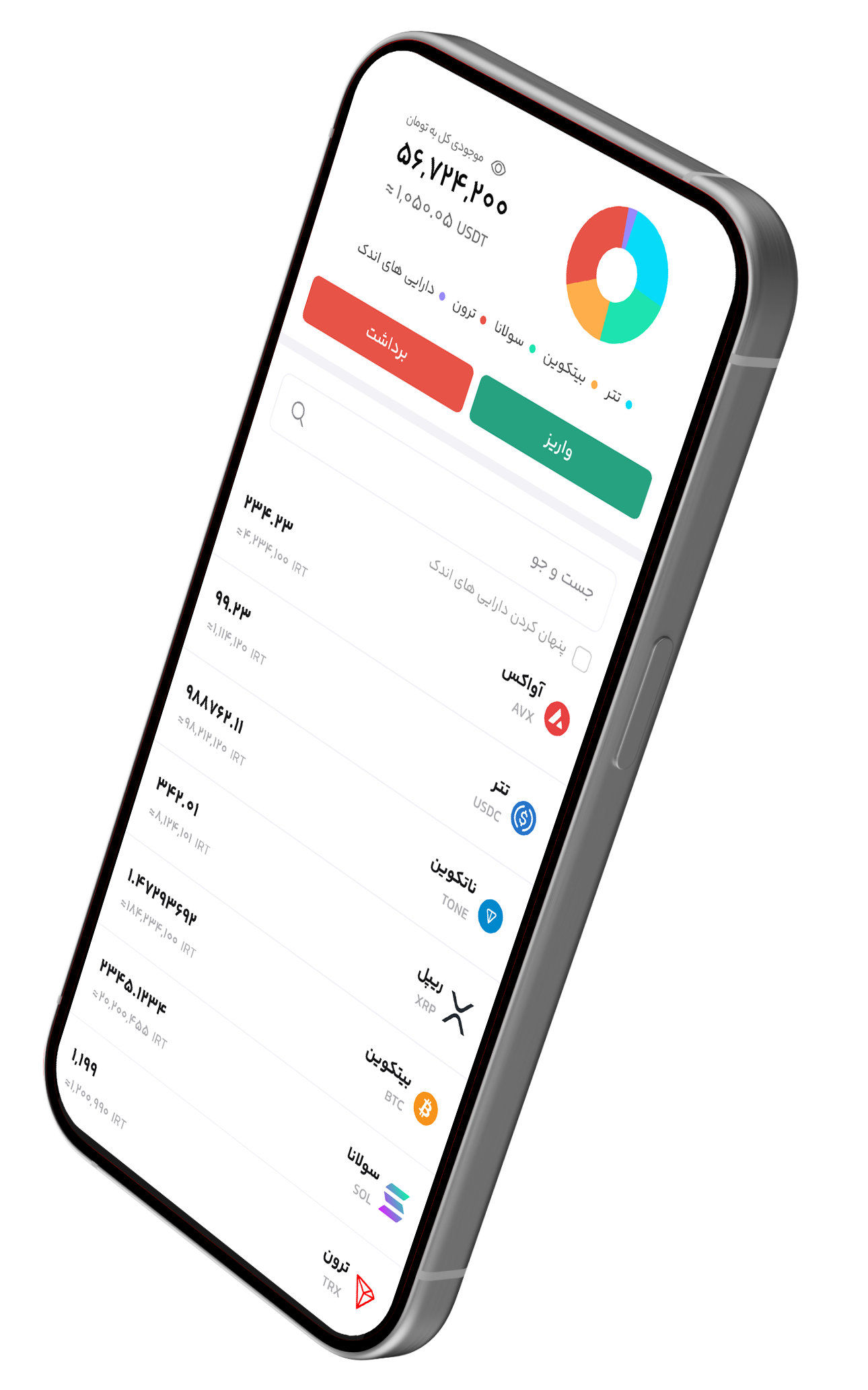 در حال حاضر به ازای هر کاربر و هر شبکه بلاکچین، یک کیف پول اختصاصی تولید شده و در اختیار کاربران قرار می گیرد تا کاربران ارز های دیجیتال مد نظر را به آدرس های ارائه شده واریز نمایند. همچنین واریز ریال نیز با استفاده از درگاه پرداخت اینترنتی و یا استفاده از سرویس واریز شناسه دار امکان پذیر است. همینطور برداشت دارایی های ریالی و یا ارز های دیجیتال به راحتی و با استفاده از تعیین شبکه انتقال، آدرس مقصد و مبلغ مورد نظر قابل انجام است.